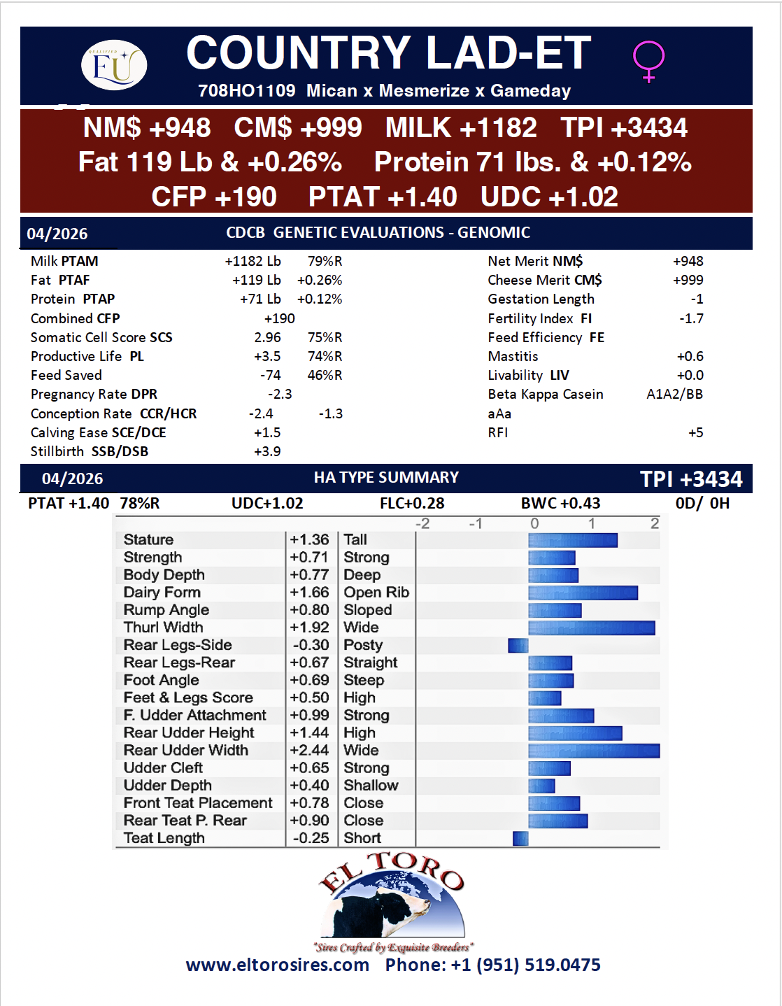 DAM: Blumenfeld Mesmerize 9037-ET VG-85 as a 2-yr old